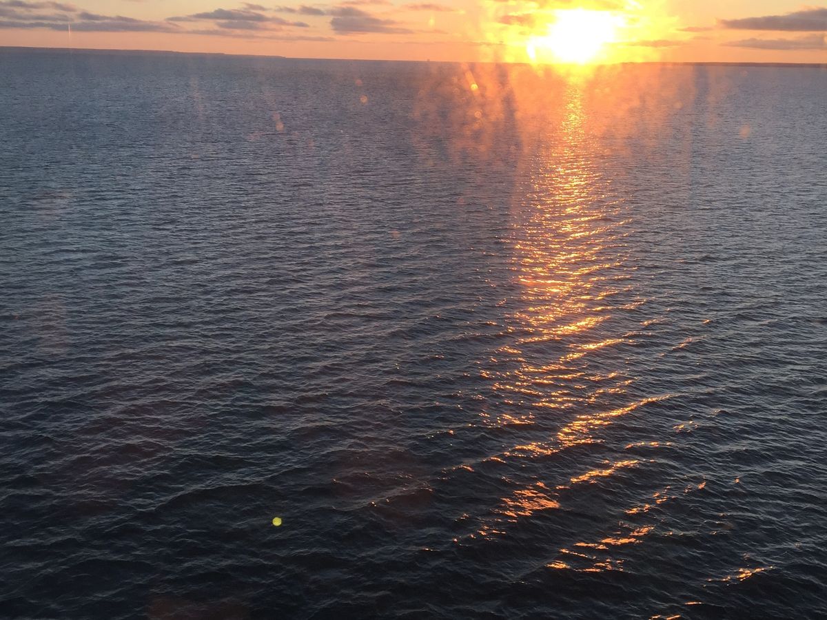 窓側の席も取れ、夕陽も臨め、心地よい船旅になりました。