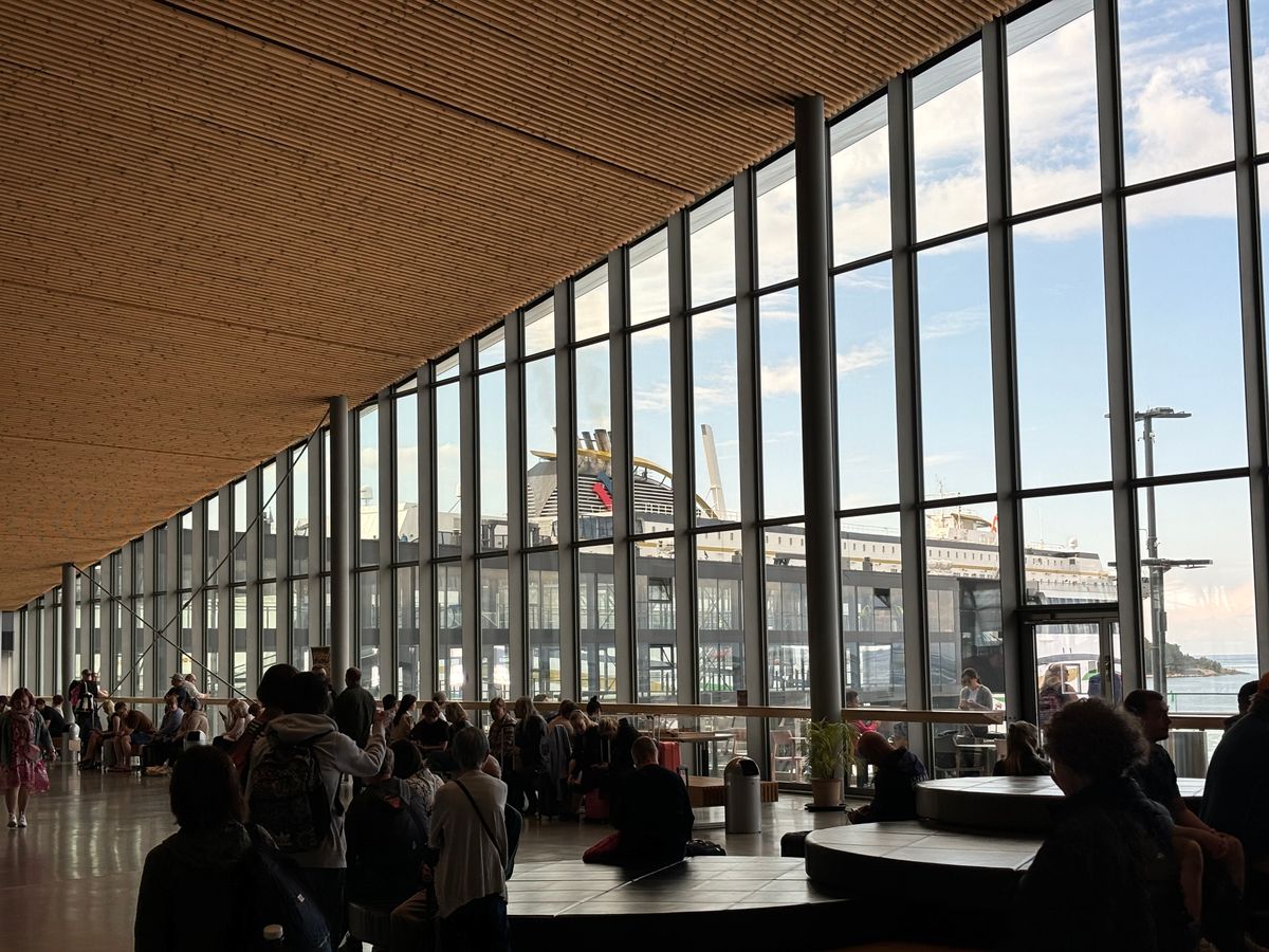 乗船した方のブログなどで見てはいたのですが、タリンクのMegaよりはほんの少しだけ設備が劣りますが(でも十分に凄いです)、想像以上に内部は広くて豪華でした。カフェやバーなど色々な所にありますので、どこかしらで座るところがあり、座席が無いという事はありませんでしたが、出港時はまだショップが開いていなかったりするので、最初は早めに乗船して席を確保してゆっくりしているほうがいいと思います。