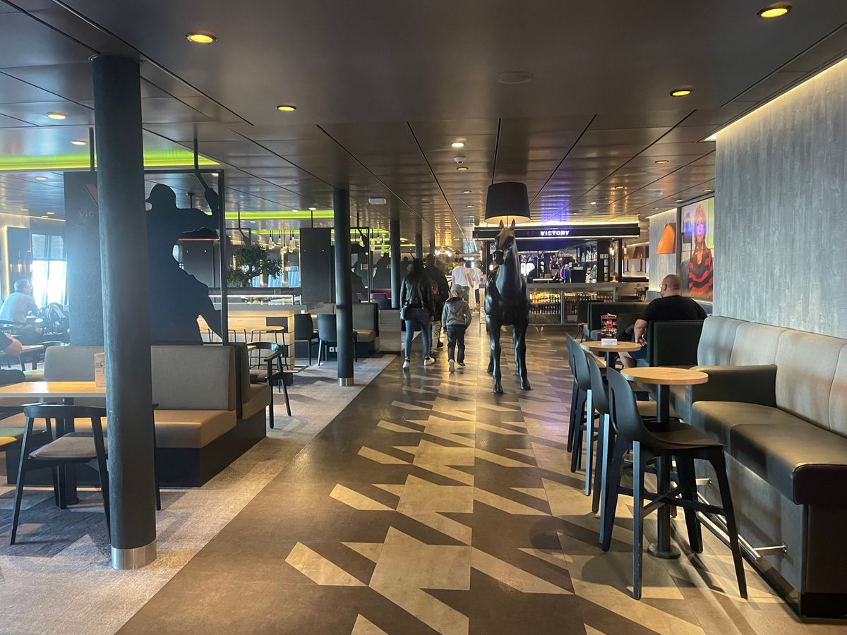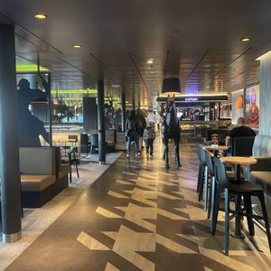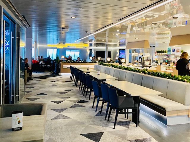2月の北欧は極寒でした。デッキには喫煙者しかいません。笑 船内には飲食店やお土産が買えるお店があります。ステージではライブや催し物もやっていました。乗船はスムーズですぐに船内でビールを頼んで飲んでました。席はいたるところにあるけど早い者勝ちです。いったんその席を離れると取られてしまうので覚悟したほうがいいです。