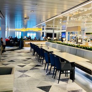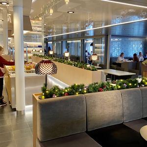 タリン発、ヘルシンキ着でラウンジを利用しました。おしゃれな雰囲気で、軽食やワインをいつでも自由にいただくことができ、快適でした。1番最後の便を利用したので、タリンの夜景を楽しむこともできました。