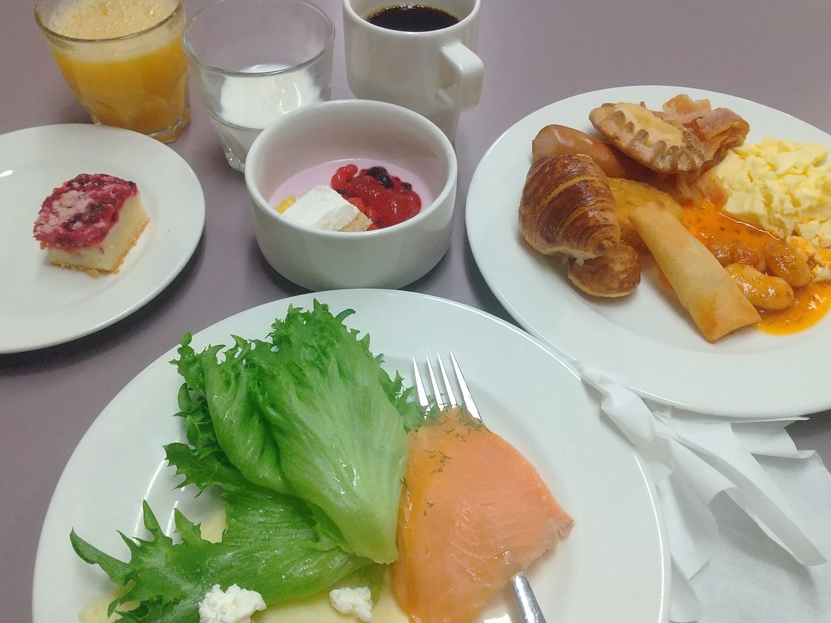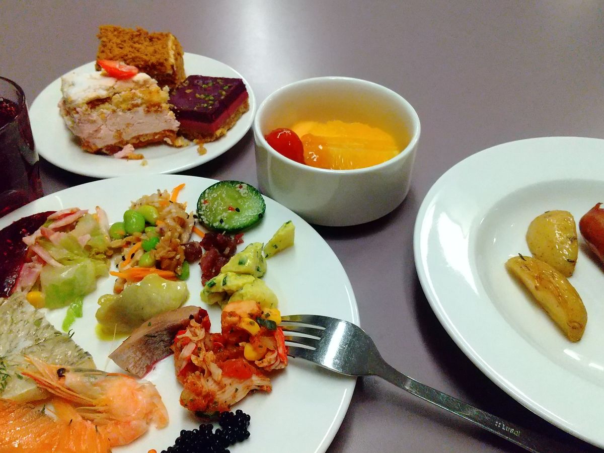 ブッフェの内容は、朝も夜も種類が豊富でサーモンや海鮮などノルウェー料理もあり、満足できました!ヘルシンキは外食は相場が高いのでお得感があります。