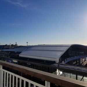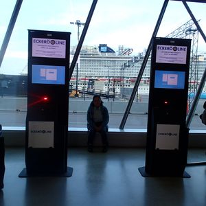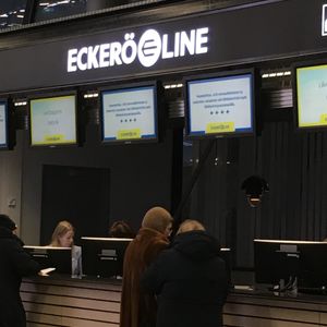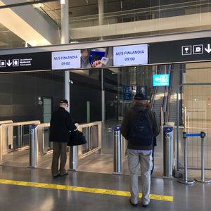 ヘルシンキ駅からトラムで15分ほどの場所にある綺麗なフェリーターミナルから船は発着します。なお、船を利用する人でトラムは非常に混雑します。ターミナル内も混雑しました。しかし非常に大きな船ですので、いったん乗船するとほぼ全員着席できるくらいの座席数は確保されています。