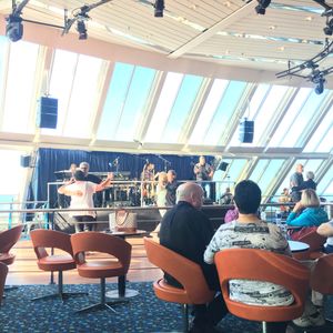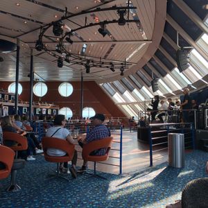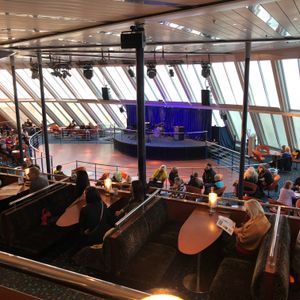 乗船後は8階がおすすめ。すぐに埋まってしまうようですが、デッキゾーンでは生バンドの演奏やほかのお客さんのダンスが楽しめます。すでに船内はヘルシンキよりも物価が安いので、みなさん一様にお酒を楽しまれていました。(年齢層高め)