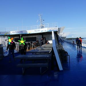 ヘルシンキからタリンへ朝9:00出航のフェリーに乗船しました。8時頃にターミナルへ到着、帰路は別記録で予約しましたが両方を提示すると往復分のチケットをくれました。船内はずいぶん広いのですが、座るスペースが少なく早目に乗船するほうがいいです。ライブ演奏(無料でみれる)、ビンゴゲーム(有料参加)など2時間半を楽しめます。乗船開始は8:30~。それまでに乗船手続きをすればOKのようです。パスポートはお忘れなく。本人確認があります。