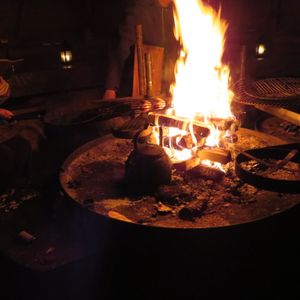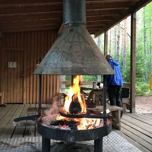 休憩中は現地の人たちが使っている焚き火場所に混ぜてもらいシナモンロール、カレリアパイ、コーヒー、ベリージュース(これはガイドさんオリジナルらしいです)をいただきました。