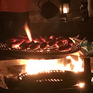また、焚き木を囲みながら、ソーセージを焼いたりコーヒーを沸かしたり…