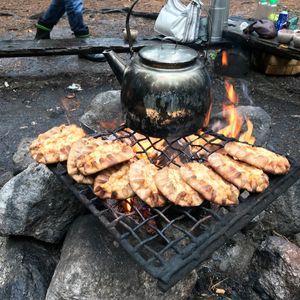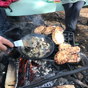 焚き火を囲んで食べたキノコ、パン、コーヒーも最高。とても素晴らしい日でした。ありがとうございました。