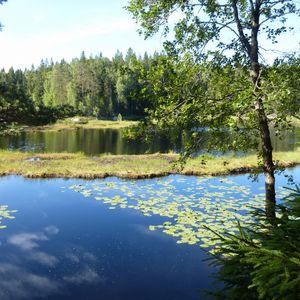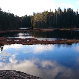 湖は、鏡のように静かで、写真を撮ると、水面に映った空が、とてもはっきり見えます。
