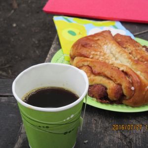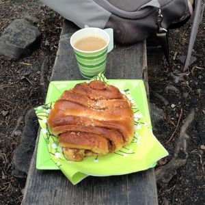 たき火をしてシナモンロールとコーヒーで素敵な時間をすごす