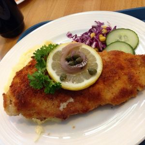 次いでトラムでヘルシンキ中心部に戻り、カフェ・スオミで解散。注文方法や解散後の交通手段など、教えてくれるので安心です。日本語メニューもありました!カツレツ(サラダ、飲み物付き)を頼んだのですが、結構なボリュームでした。