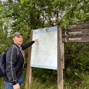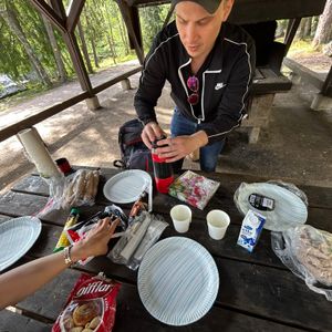 お天気もよく、まさにフィンランドという湖を眺めながら山道を歩くのがとても楽しかったです。途中ブルーベリーも摘み、美味しくいただきました。ガイドの方は日本語が堪能で、フィンランドのことをたくさん聞かせてくださり、フィンランドを身近に感じ、楽しく勉強になりました。また、日本と日本語に関心があることを話されていて、それも嬉しかったです。ランチでは熱々のマッカラとカレリアパイをいただきました。とてもとても美味しかったです。火起こしの道具から飲み物まで用意してくださっていました。楽しくて美味しいツアーをありがとうございました。また次回も参加したいと思う充実したツアーでした。