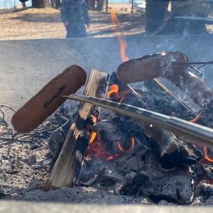軽食は、焚き火でソーセージを焼いていただきました。最高に美味しかったです。