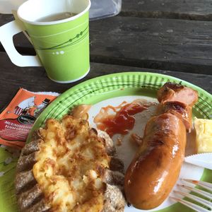 快適な山歩きに ベリー摘み、きのこウォッチング を楽しみながら、途中の湖近くで休憩をとりながらひと周りしたら バーベキュー炉に火を起こして、ガイドさん持参のソーセージをアルミホイルに包んで焼いてくださり、パン、温かいコーヒー、ベリーのジュースでランチタイム。
