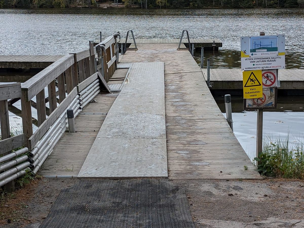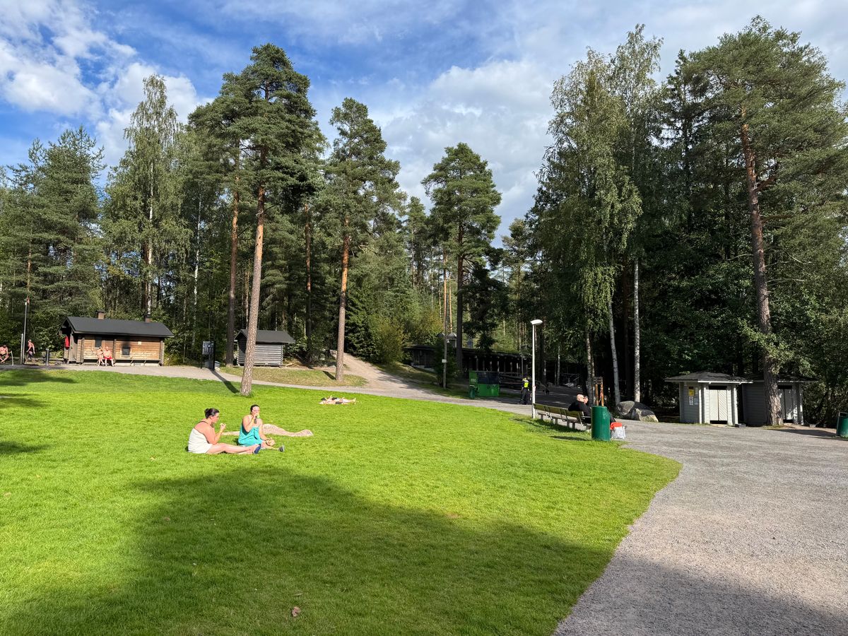 スモークサウナのある場所から近い桟橋の下は私には足が届かなかったので、泳ぐのを躊躇しましたが、ロッカールームがある建物から近いセリアは、湖の中に子供用の仕切りなどがあって、多くのフィンランド人の家族や若者が湖水浴を楽しんでいました。