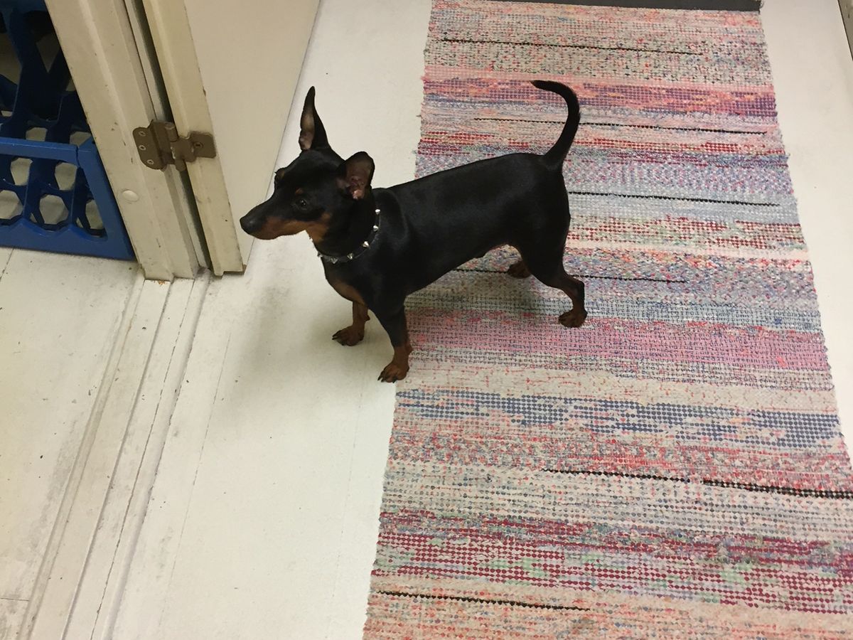 サウナに入っているとドアの下の隙間からこのお店で飼っている黒い子犬が入ってきました。