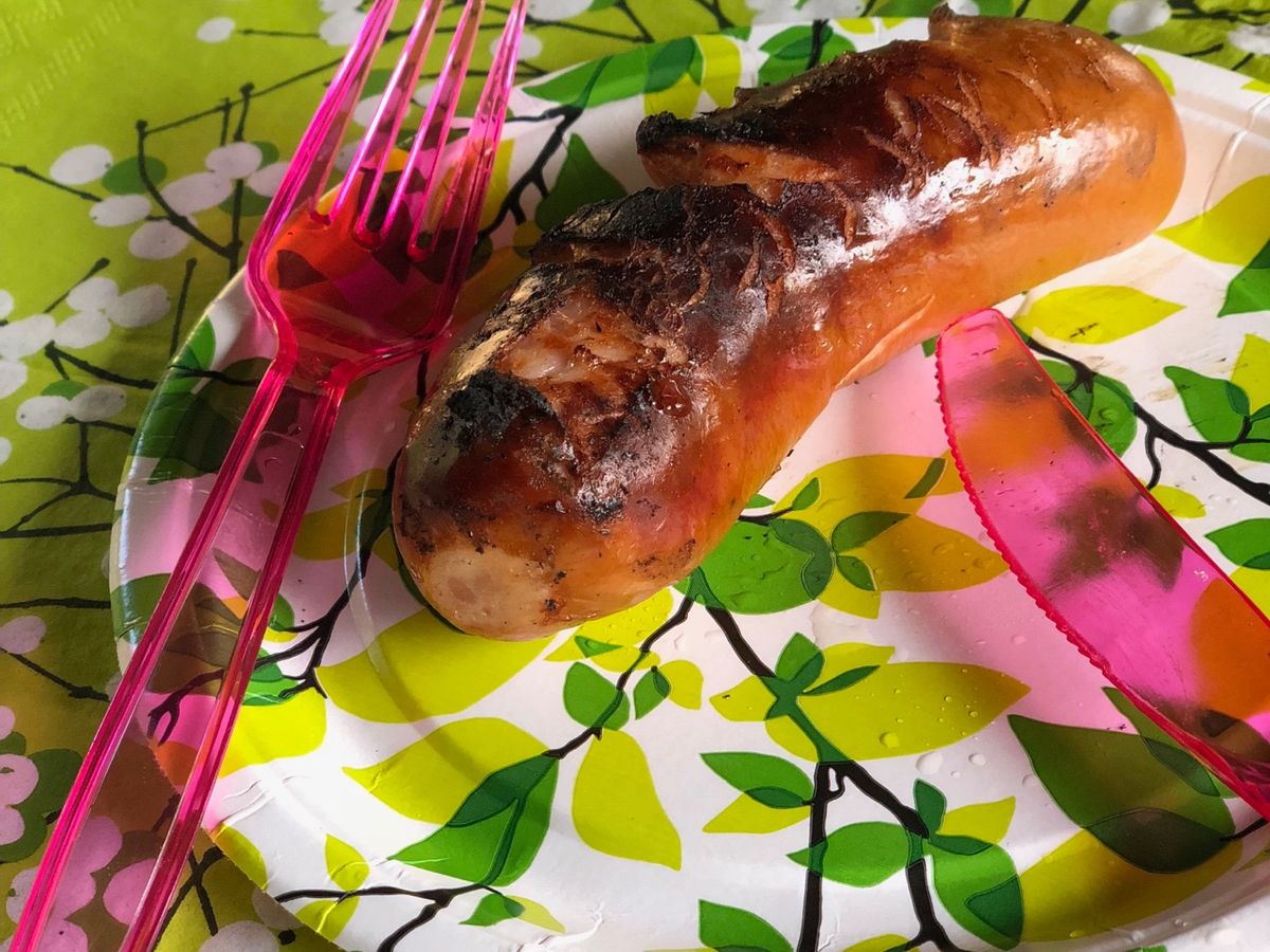 ソーセージとパンが焼けていきます。