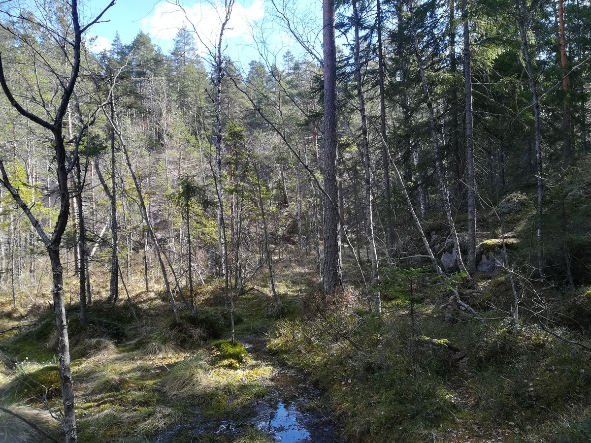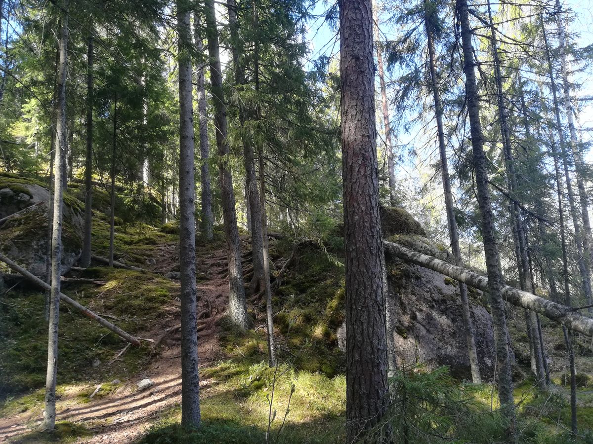 我が家の旅行は、格安の航空券や宿を個人で予約する節約旅行です。よって、ヘルシンキでの森と湖の体験は、ヌークシオ国立公園へ公共交通機関を使って行く計画をしていました。そして、旅行前にインターネットでいろいろと調べてみると、ヌークシオ国立公園へ個人で行った場合、整備された散策路を歩くしかないことがわかりました。これでも十分楽しめるとは思ったのですが、今回参加したツアーの案内に「手付かずの森の中、少しサバイバル的なハイキングをお楽しみいただけます。」との記載があり、この文章に惹かれてツアーに申し込みました。結果、大正解でした。整備された散策路を外れ森の中へ入りました。ガイドさんがいなければ絶対に前に進もうとは思わない森の中を進みます。個人での散策では体験できない内容でした。ガイドさんが500ccペットボトルの水、パックのジュース、チョコレートを各自に配布してくれました(ガイドさんによるのかもしれません・・・)。大変うれしかったのですが、事前情報がなく、500ccのペットボトル2本を持参していたので、2Lの水をリックに入れて歩くことになってしまいました。まっ、予期せぬことも旅の1つです。ガイドさんは大変熱心な方で、自分でわからないことはネットで調べて教えてくれました。本当に楽しい時間を過ごせました。