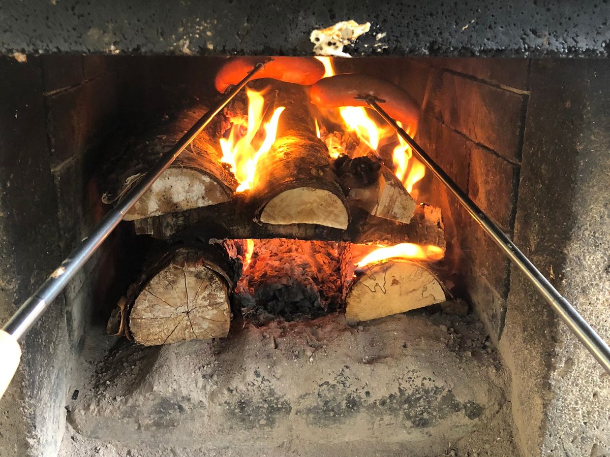 到着してすぐにまき割り、火おこしをしてあっという間に