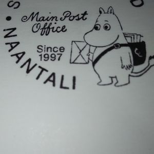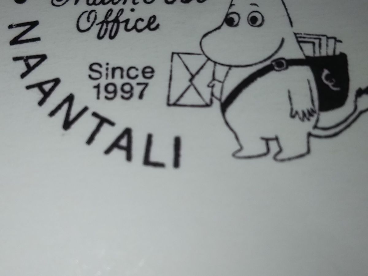 ムーミンワールドの中の郵便局からハガキをだして、ムーミンの消印が押されて1週間後位で日本へ届きました。