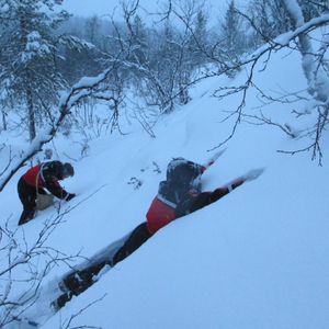 最初は公園の散歩程度に考えていましたがこれが道なき道を登ったり下ったり結構ハードな公園散歩でした。積雪は1m50cmほどあるそうですが長期の積雪と低い気温でコチコチに固まっておりその上に雪がかぶって新雪をなしています。動物の足跡はありましたが動物そのものを見ることはできませんでした。いろいろ自然の説明をしてくれてそれはそれでなかなか楽しかったですが体力に自信のない人はお勧めできないかもしれません。