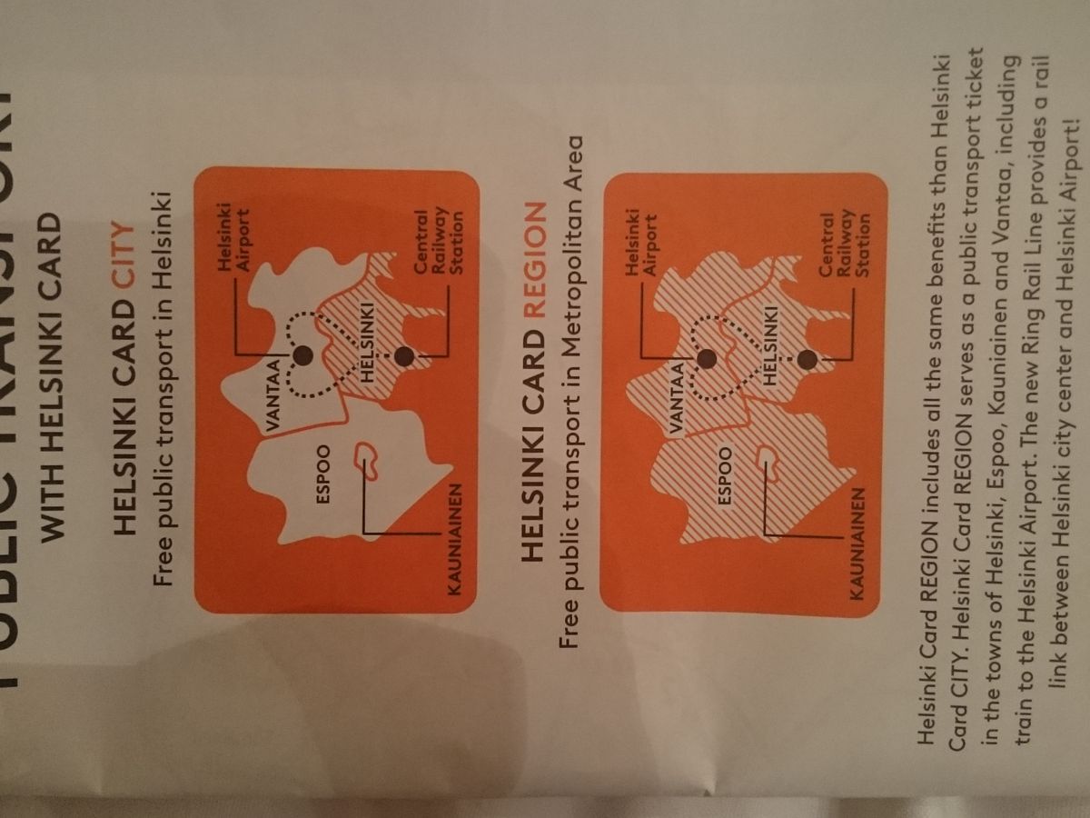 私はてっきり空港からの交通機関も含まれているかと思っていましたが、ヘルシンキ空港のあるVANTAAからヘルシンキ内に行くには別途支払いの必要があります。(空港はヘルシンキ内ではありません。)