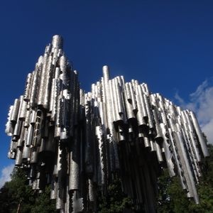 車窓から景色を眺めながら、日本語ガイドで歴史やヘルシンキの人々の生活模様などを聞きつつシベリウス公園へ(15分の下車)。