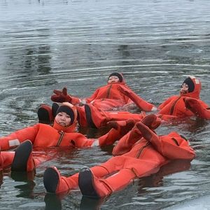 ヘルシンキで「フィンランドの冬」を楽しみたい方にぜひ参加していただきたいアクティビティ。冷水の中でも6時間は暖かさをキープできるスーツなので安心です。ポイントはいかに隙間を作らずスーツのチャックを締めるかなので、スタッフに手伝ってもらいました。