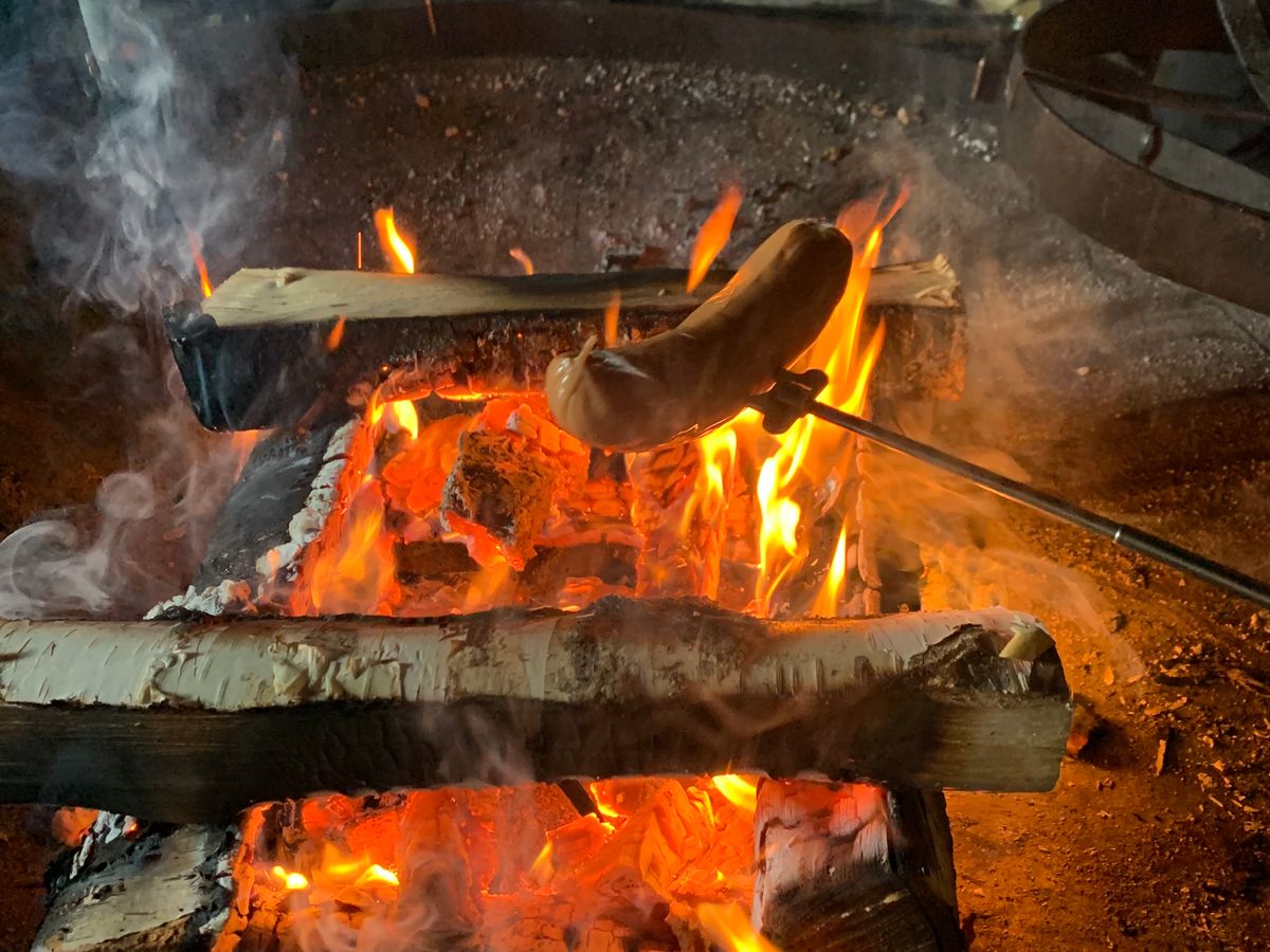 コタではたくさんの人が次々とやってきて、とても賑やかで、薪で焼いたソーセージは格別に美味しかったです!