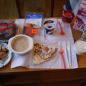 最後のスーパーの買い物では、サミさんお勧めのパンやスープ、飲み物などを教えてもらって買い求め、昼食に頂きました。