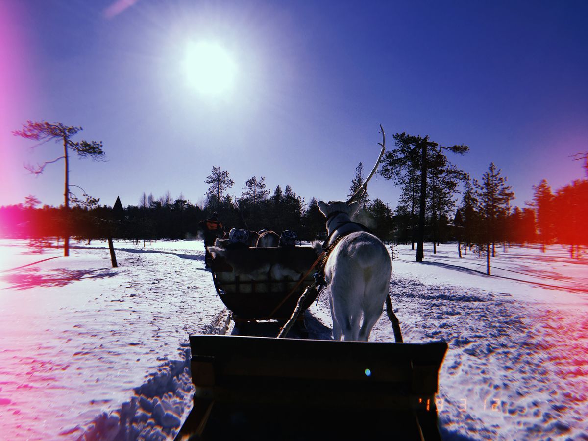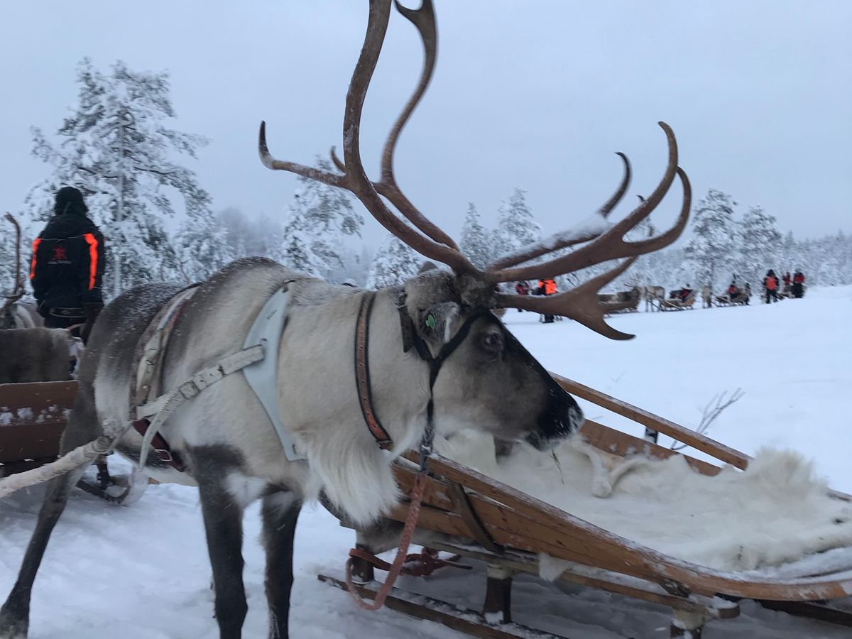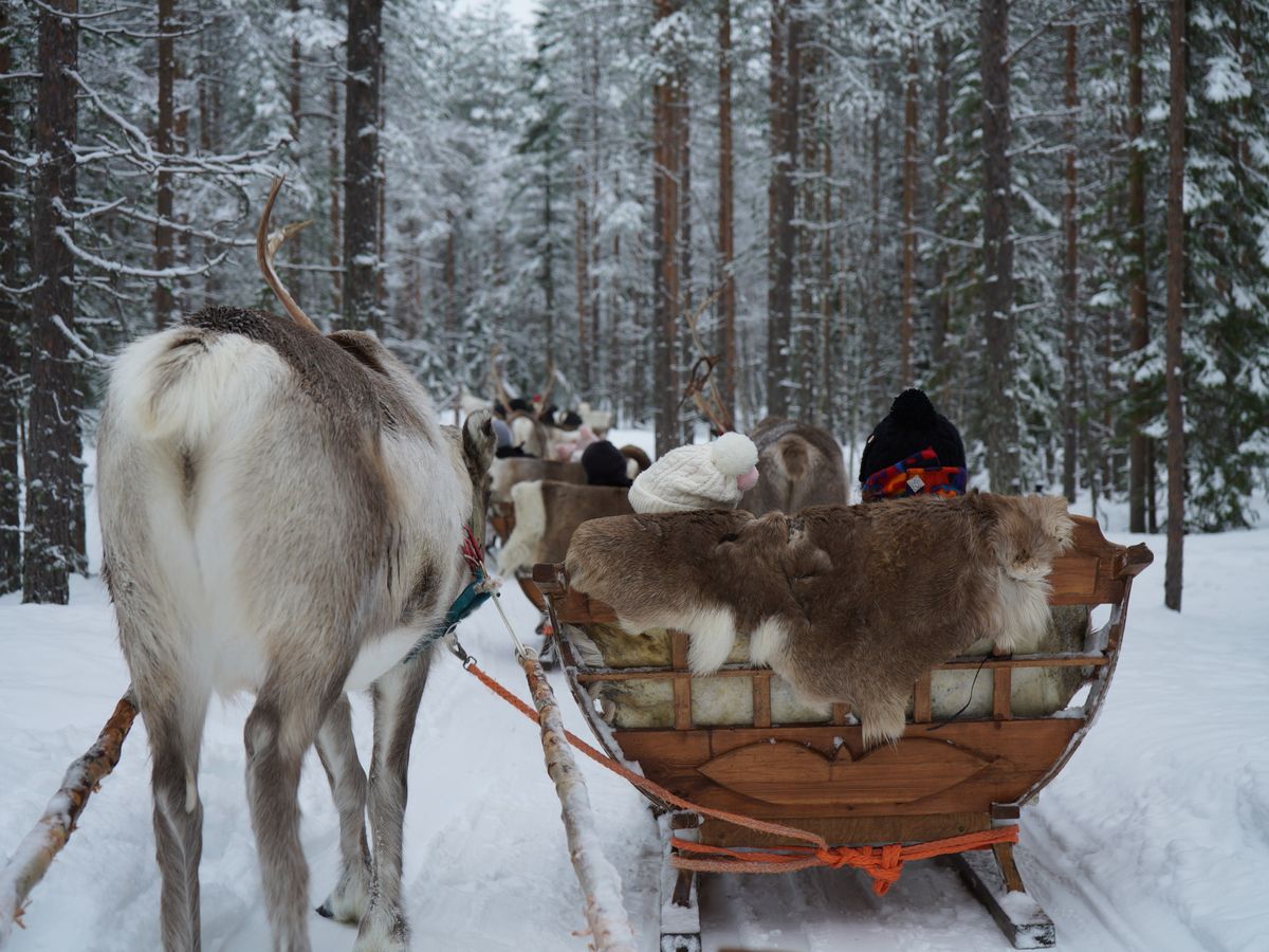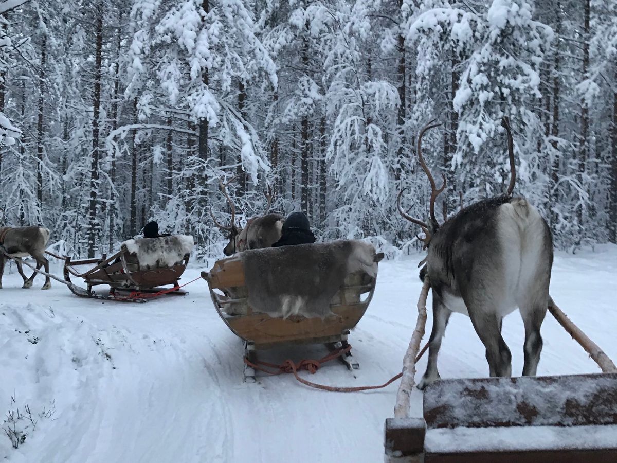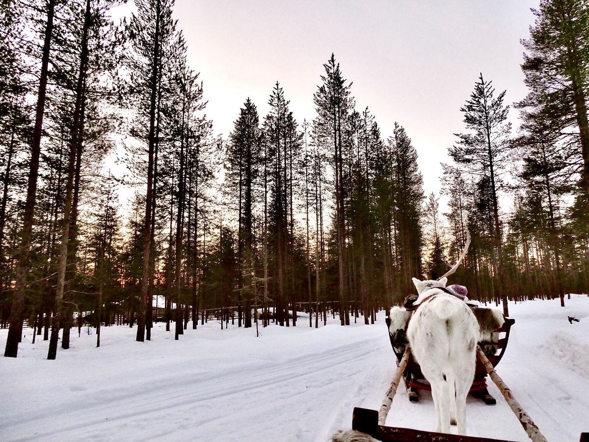雪景色の森をトナカイぞりに乗っているのはアナ雪そのもの。しかも私たちの乗ったそりの後ろのそりを引くトナカイが常に真横を並走する形で、それこそ角当たりそう、鼻息もかかるくらいの間近でとっても楽しかったです。せっかちなトナカイ(名前が難しく覚えられなかったので勝手にスヴェンと命名)に感謝です。