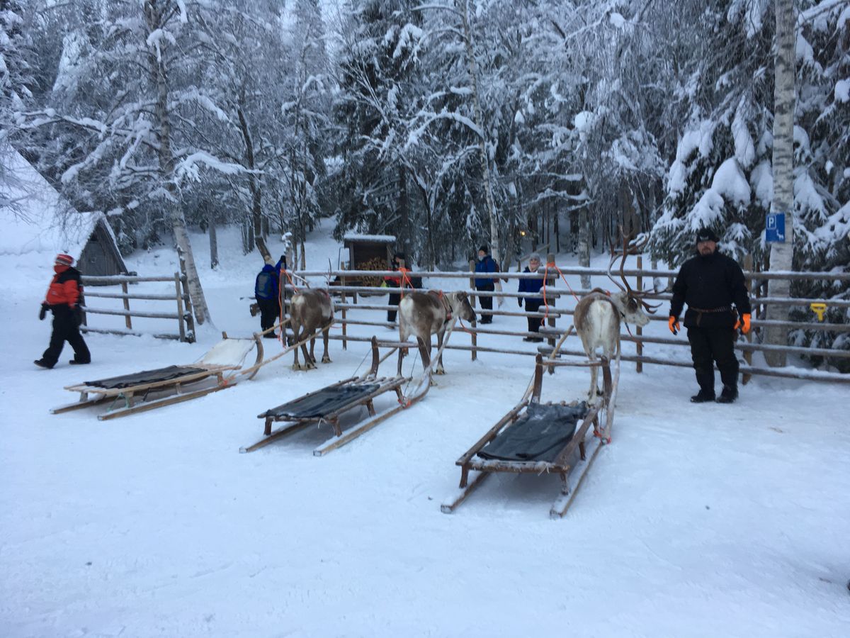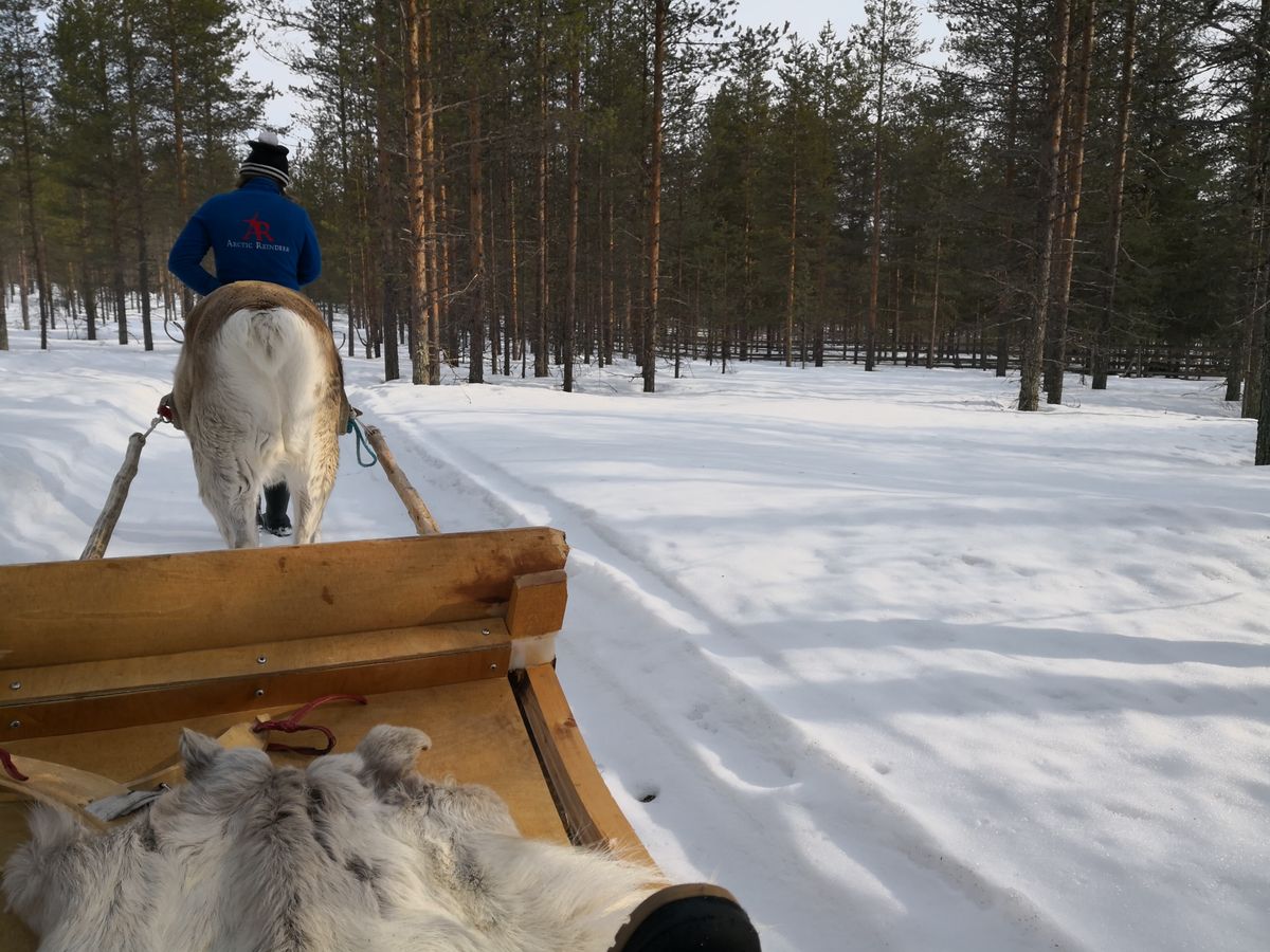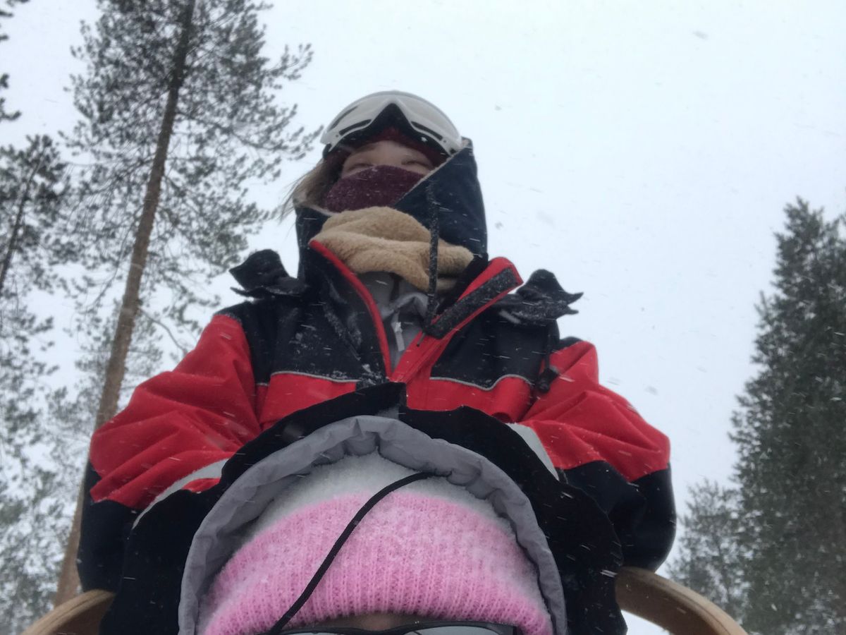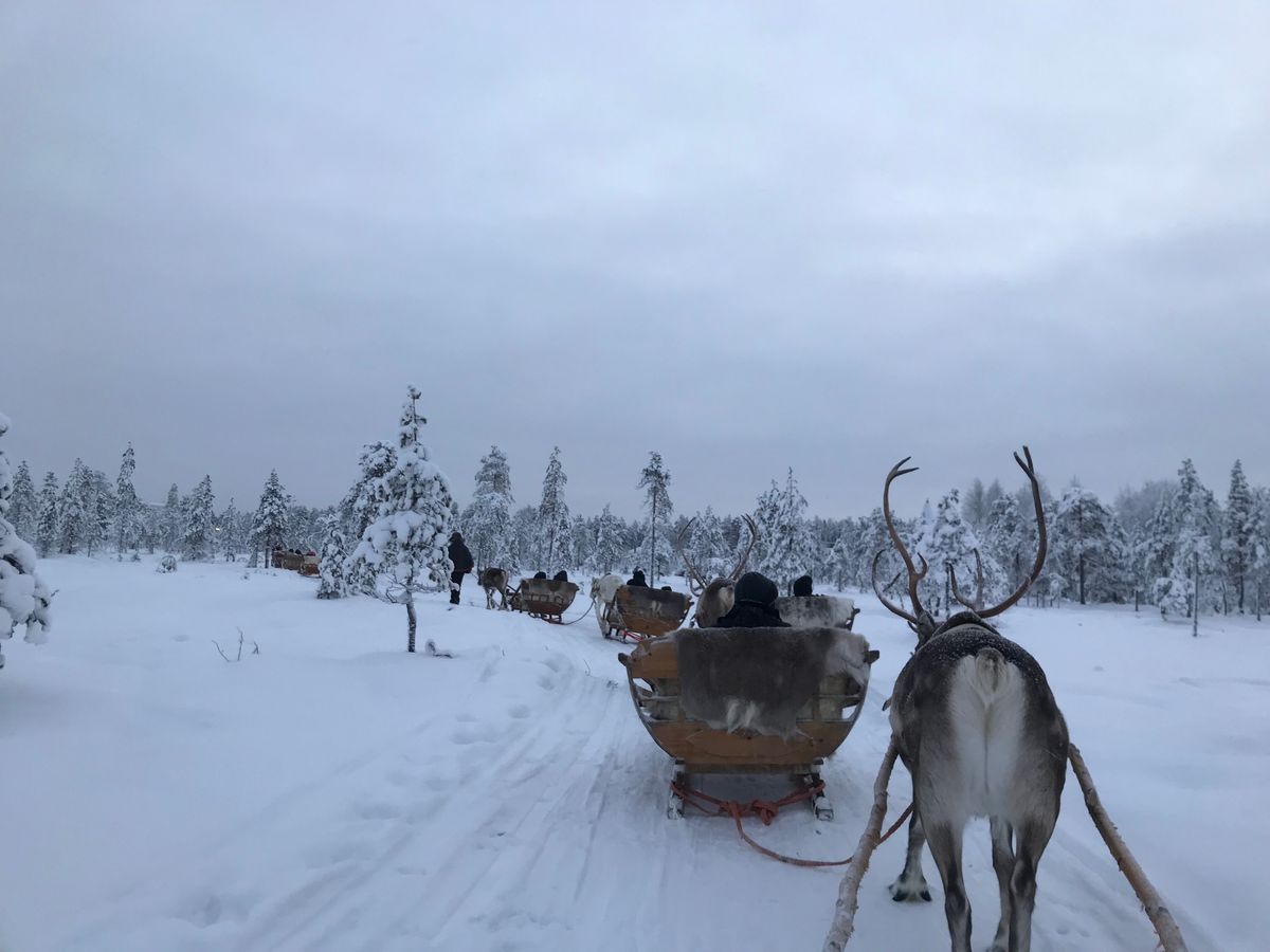 雪景色の森をトナカイぞりに乗っているのはアナ雪そのもの。しかも私たちの乗ったそりの後ろのそりを引くトナカイが常に真横を並走する形で、それこそ角当たりそう、鼻息もかかるくらいの間近でとっても楽しかったです。せっかちなトナカイ(名前が難しく覚えられなかったので勝手にスヴェンと命名)に感謝です。
