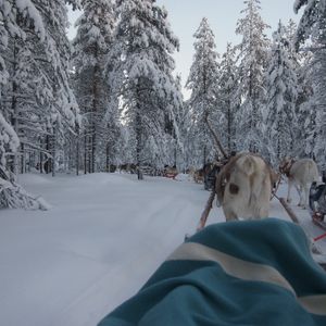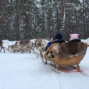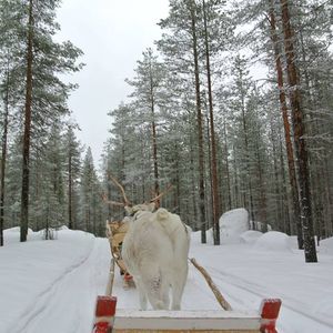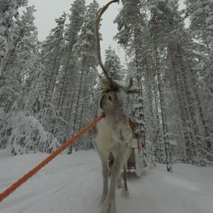 雪道をトナカイが私達をゆったり引っ張ってくれます‼︎のんびりと雪道を見ながらのそりは最高の体験になることでしょう。