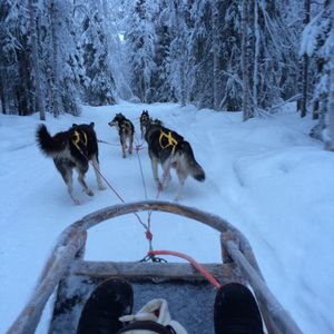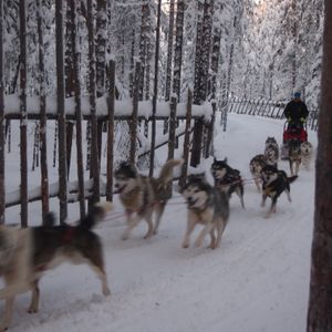 サンタ村から歩いて二分ほどの場所にハスキー犬牧場があるので、そこで個人的にハスキーそりを申し込んだ方が絶対にいいです。とても楽しいので。(50ユーロほど)