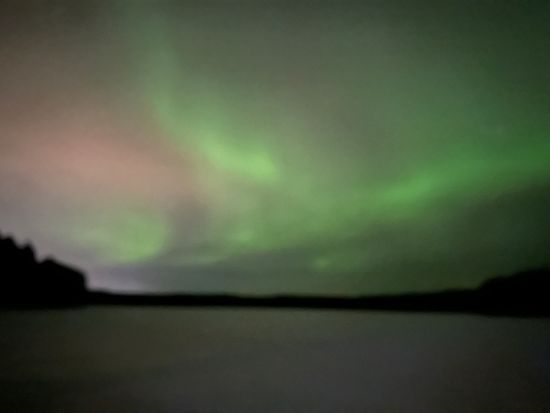 私は初めてのオーロラハントで、オーロラを見ることができとてもラッキーでした。オーロラは、肉眼ではカメラほど綺麗に見えません。それでもiPhoneのカメラでは十分綺麗に撮ることができ、大満足でした!!