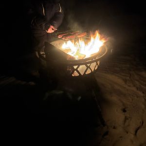 オーロラを待っている間、真っ暗な静寂の中で焚火を囲みながらソーセージを焼いたり、静かに話をするのはいいですね。
