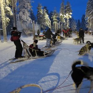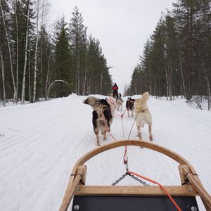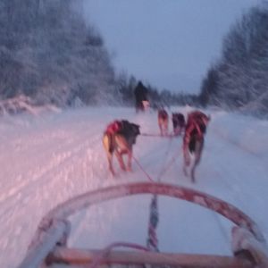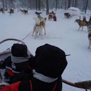 犬ぞりにのって、一時間程雪原を走りました!ラップランドサファリオフィスで防寒具を借りられるので全く寒くありませんでした。