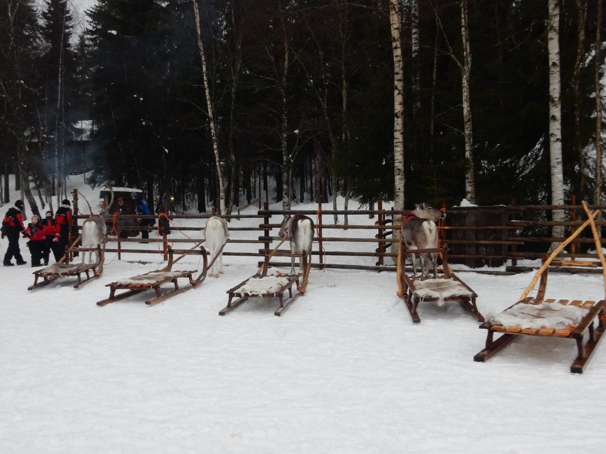 スノーモビルは迫力あり 爽快で楽しかったです。トナカイそりは角のないメスが多く 角のあるオスは1匹くらいでがっかり。トナカイ牧場には2匹しかいなかった。サンタクロース村にはバスで行ったが 昼食の時間がかかりすぎ、見学までは 時間が足りなかった為、仕方なく 次の日に出直した。