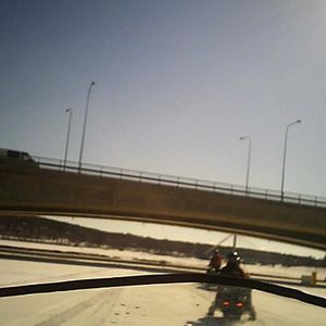 後に何人居るのか 確認する間も無く スタートの合図!いきなりのフルスロットル❗️夕方4時を過ぎて暗くなった中 ガイドさんのスノーモービルが 巻き上げる雪けむりの中チラチラと見えるテールランプに集中しながらスロットルを微調整スピードメーターを確認する事も忘れる位必死でした(^^;; 体感では100キロ出てたかな(^^)
