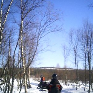 さぁ〜スノーモービル、ナビゲーターの若くて可愛いお姉さんの後を二人乗りのバイクに跨り颯爽に雪の平原を走り、次にトナカイ橇を体験林間こーすを一周、途中トナカイが糞をしながら橇を引いて健気にも職務を懸命に果たしていました。