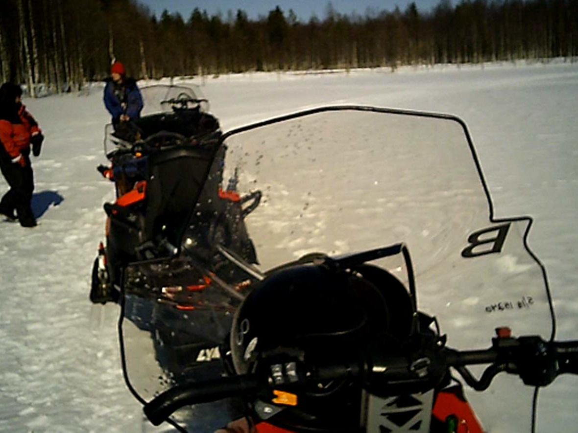 メインはスノーモービル運転で、片道30分位運転します。