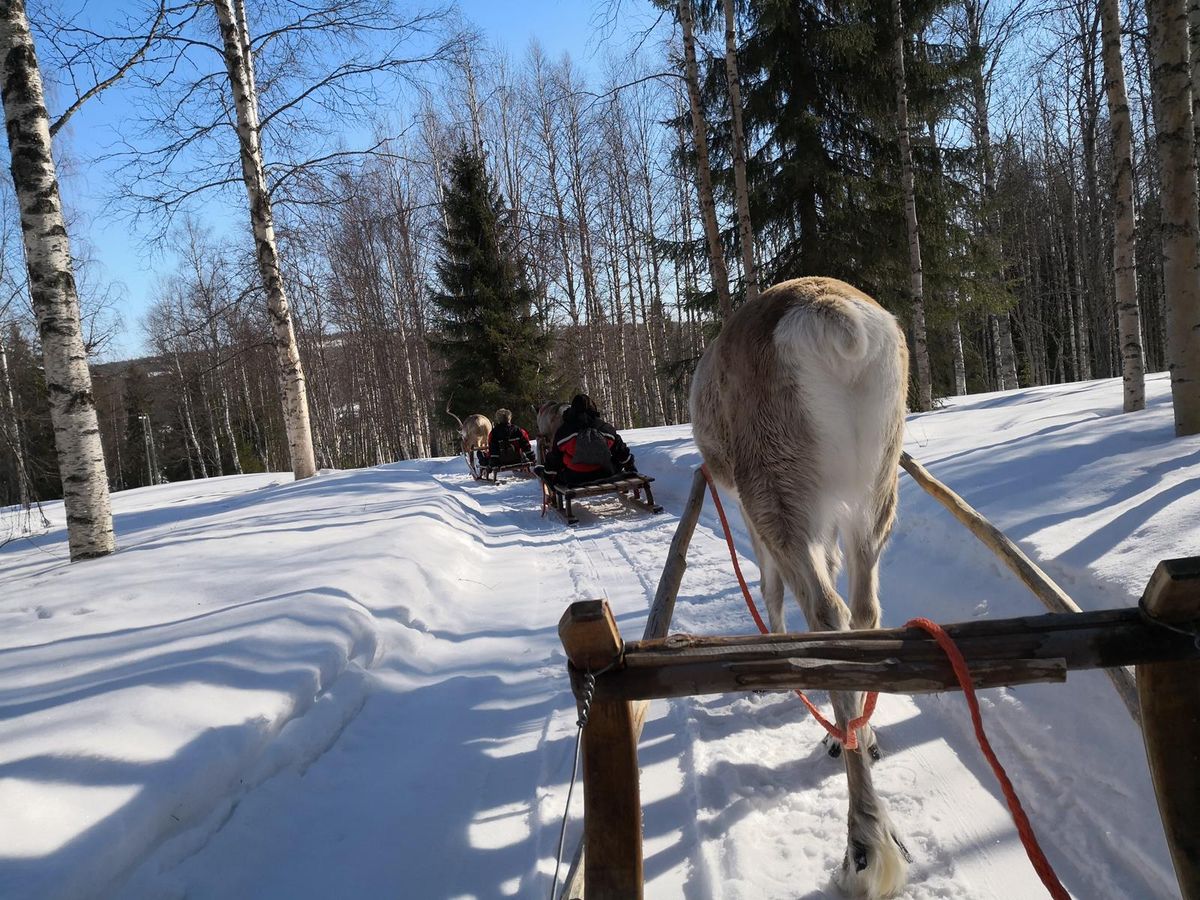 スタートしてすぐは、ちょっと走路が荒れていて揺れましたが、工程全体ではスムーズに走れて、ようやく昇った低い太陽に照らされながら、爽やかにスノーモービルの運転体験が出来ました。スロットルも安全面を考えて調整してあり、インストラクターも要所で確認や、スピード調整をしてくれて、安心して安全に楽しめました。トナカイそりは意外とスピード感があり、こっちはまた違った体験が出来る趣向に、満足です。