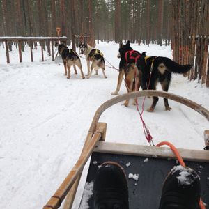 サンタ村から歩いて二分ほどの場所にハスキー犬牧場があるので、そこで個人的にハスキーそりを申し込んだ方が絶対にいいです。とても楽しいので。(50ユーロほど)