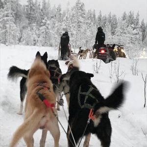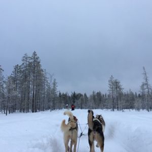 ロヴァニエミ近郊で行われる、ハスキー犬による犬ぞりツアー。最初の操作方法や注意事項の説明後、コースに沿ってハスキー犬による犬そりを運転する。2人乗りで、コースの半分で運転手を交代してもよい。かなりのスピードが出て、スピード感満載。