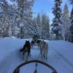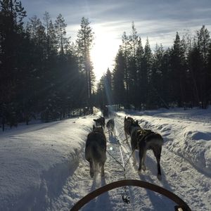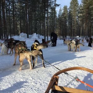 犬ぞりにのって、一時間程雪原を走りました!ラップランドサファリオフィスで防寒具を借りられるので全く寒くありませんでした。