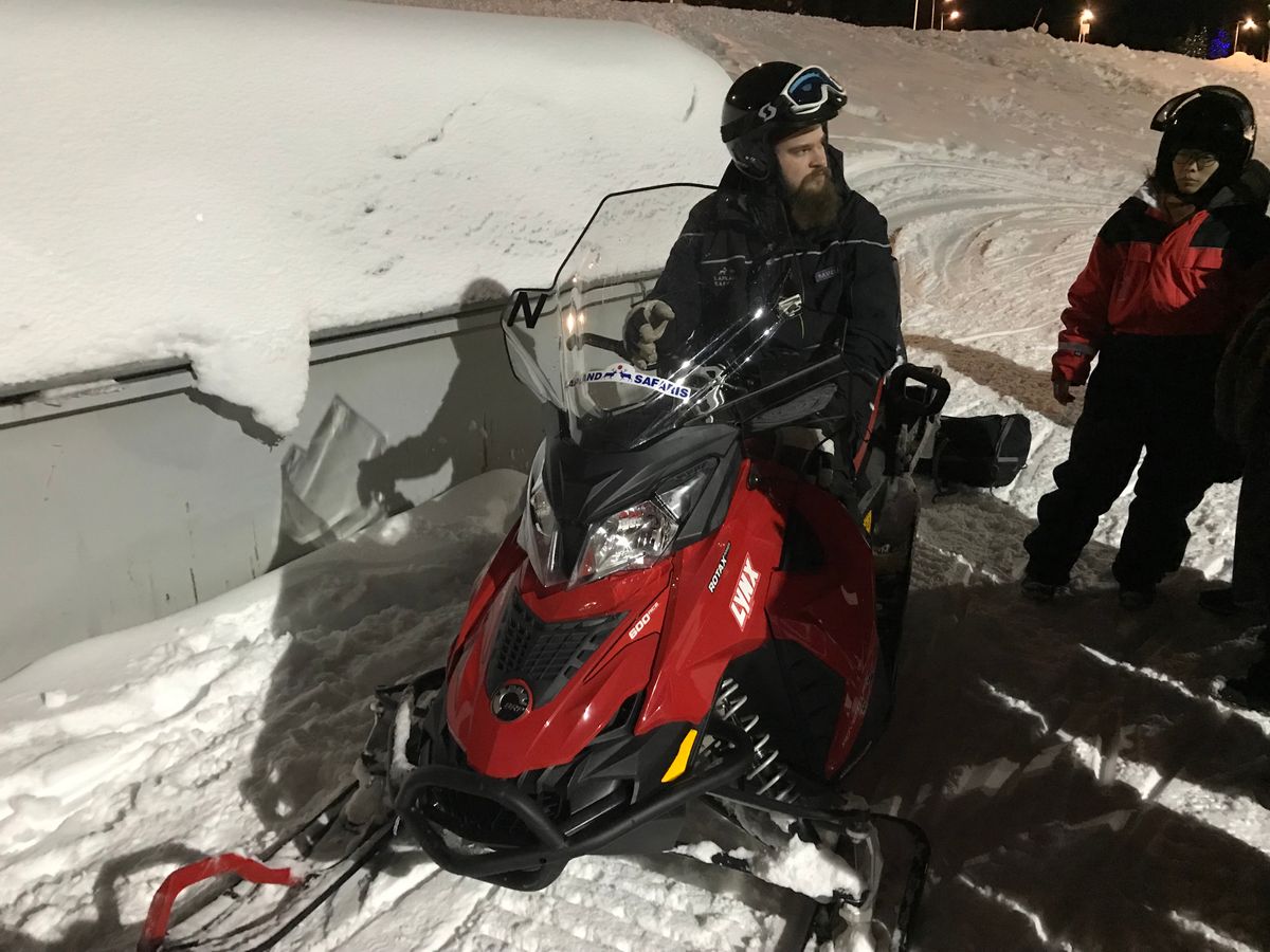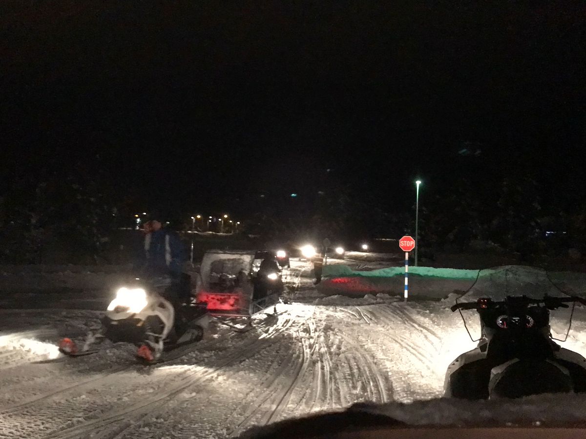 防寒着に着替えスタッフの運転するスノーモビルに引かれてオーロラを探しながら鑑賞するツアーです。小雪交じりの天気だったのでオーロラは見れませんでした。気温とスノーモビルに引かれる風で体感温度がだいぶ下がるのでカイロヺ貼ったり持っていくことをオススメします!終わりごろには体がキンキンに冷えてしまった~