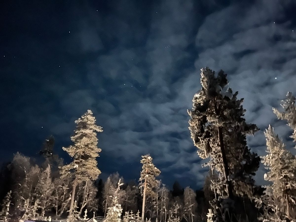 滞在先のサーリセルカでは、断続的に雪が降っていたので、オーロラが見られるか心配でした。