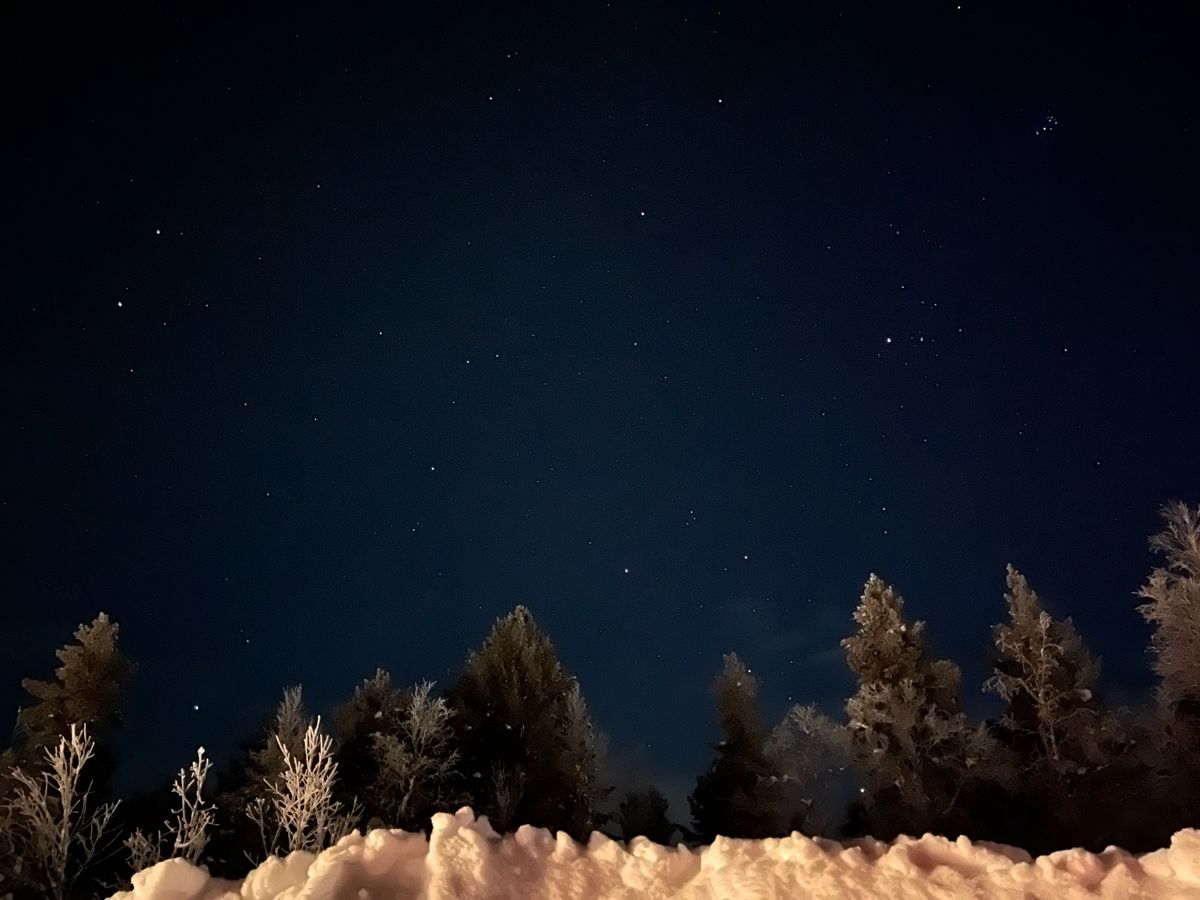 昼間はかなり雪が降っていたのですが、夜は晴れて月と星が綺麗でした。