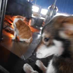 犬ぞり終了後は暖かい暖炉の前でホットドリンクがいただけますがトイレに困りました。鍵が閉まらなく、つなぎの防寒着だとトイレをするのに勇気がいります。つなぎを脱いでから仮設トイレでする感じなので私はバスで帰ってきてから返却場所まで我慢しました。