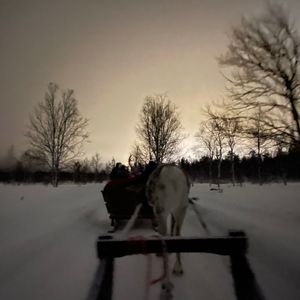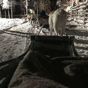 天候が悪く、オーロラは見ることができませんでしたが、トナカイぞりに引かれながら左右に流れる森の風景は幻想的で十分楽しめました。