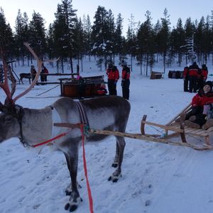 ゆっくりゆっくりソリに乗ってトナカイくんに引かれながらお散歩。毛布みたいのを掛けてくれるのですが、すごい寒がりの方は靴の中にホッカイロを入れておくとよいかもです。私は最後尾だったので乗っているときはトナカイくんのお尻しか見れなかったのですが、野生の?トナカイがやってきて追いかけられるという、少しドキドキするような体験ができたので楽しかったです。日本人が多かったですが、外国の方も参加しており、ここではフレンドリーに話しかけてくれる方が多かったです。片言の英語でも楽しそうにしてくれて、一安心でした。